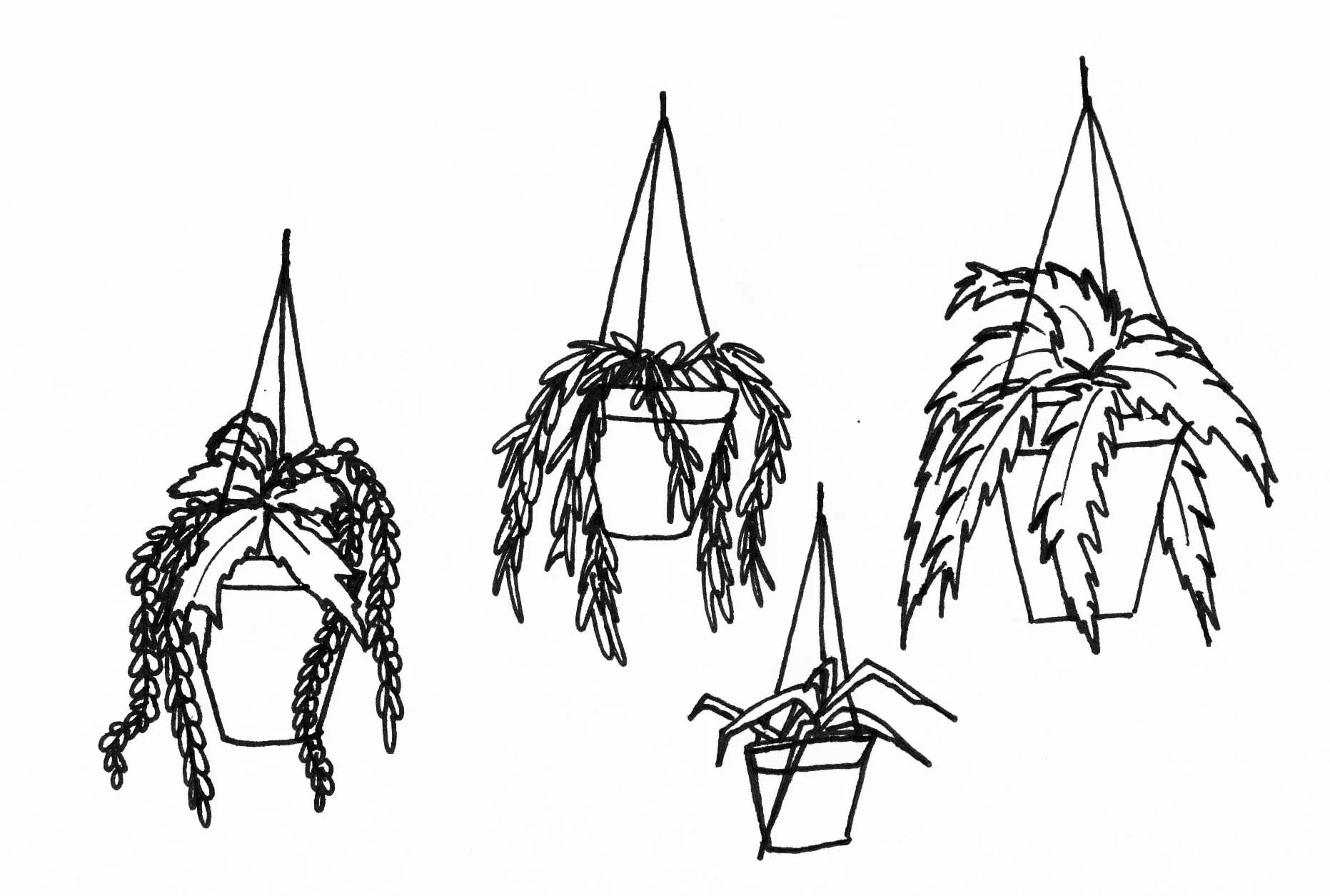 Made these mini hanging plants in some down time, starting with a sketch and playing with that sketch in Illustrator.